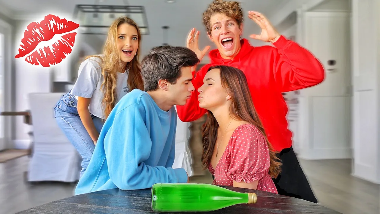 have to do is like this video subscribe to my channel comment down below done and i will pick five people to be on the wall at my warehouse next week all right so today we're playing spin the bottle um we're all about to make out with each other so we have this bottle right here and we have four of us we're gonna spin it whoever it lands on hash two pick from the head of theirs all right i'm gonna start the first spin here we go okay three two one [Music] oh god was that me