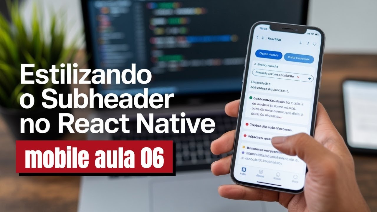 do react Native hello vamos printar aqui né um Hello from sub header e olha lá no app né Hello from subheader então a componente tá criada já tá funcionando por enquanto não vai ter estilo né porque a gente vai deixar isso pra próxima aula mas aqui dentro o que que a gente tem o texto produtos né E essa este segundo texto aqui né nesta página você verá os seus produtos cadastrados Então vamos copiar isso aqui eh e nós teremos a tag text né um text escrito produtos que seria meio que o título né E outra