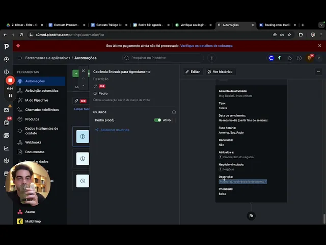 direto a taxa de não confirmação caiu muito então isso aqui não é um problema mais pra gente hoje já foi um problema eu vou querer que uma vez que ele confirmou que ele compareça aí vai ser a mesma coisa uma vez que ele me confirmou eu mando uma mensagem para ele com data e hora né confirmada eu mudo o proprietário e notifico o closer do tipo olha Yuri le confirmou vai vai comparecer mesmo por que eu deixo isso aqui porque não faz sentido eu trocar atividade pro closer antes da pessoa confirmar dizer que vai mesmo