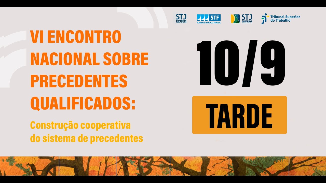 Senhoras e senhores Bom dia Pedimos que ocupem seus lugares e que a partir deste momento mantenham seus celulares no modo silencioso tem início a cerimônia de abertura do sexto Encontro Nacional sobre qualificados construção cooperativa do sistema de precedentes uma ação conjunta do Supremo Tribunal Federal do Superior Tribunal de Justiça e do Tribunal Superior do trabalho neste momento convidamos para compor o dispositivo de honra sua excelência o senhor presidente do Tribunal Superior do Trabalho e do Conselho superior da Justiça do Trabalho Ministro Lélio Bentes Correa acompanhado do excelentíssimo senhor presidente do Supremo Tribunal Federal e do