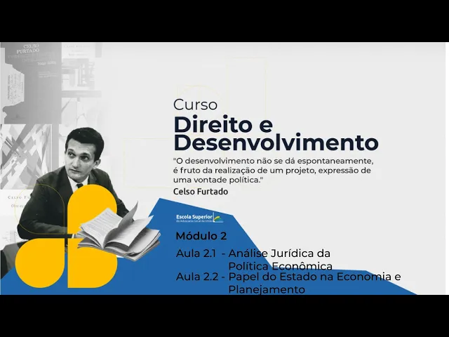 [Música] Então bom dia todos e todas sejam todos muito bem-vindos todos muito bem-vindas ao Nosso a nossa aula sobre direito econômico e análise jurídica da política econômica aqui na escola da GU no curso direito e desenvolvimento Eh estamos aqui Então hoje iniciando a segunda parte do curso né a gente teve uma caminhada bem longa no primeiro primeira parte do curso falando tanto Sobre as teorias do desenvolvimento né teorias econômicas sobre desenvolvimento análise da obra do Celso Furtado análise da obra do Inácio Rangel análise da obra da Maria da conção Tavares e alguns aspectos específ específicos