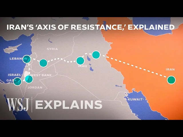 (suspenseful music) - Iran-backed groups form a land bridge across the Middle East and connect in an alliance that Iran calls the Axis of Resistance. Its focus, to oppose the West. They can both transport equipment and personnel, but they can also use these positions to attack US interests or threaten Israel closer to its borders.