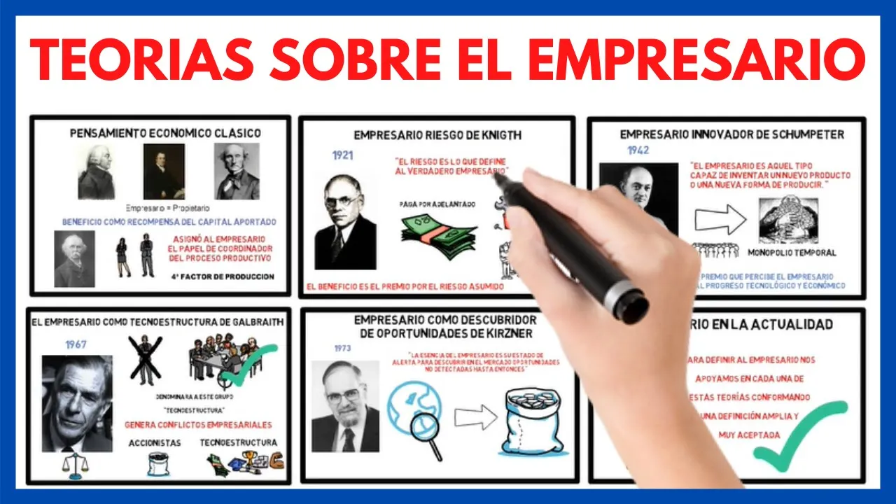 welcome once again to home economics today we will continue with the free course on business economics in this chapter we will talk about the theories of the entrepreneur traditionally the entrepreneur was considered as the person who gave life to the company he coordinated and He directed the production process, risking his capital in this ancient definition, it can be seen that the figures of the entrepreneur and the owner of the company are identified, that is, they are the same person, however today especially in large companies the owner is the partner Capitalist, that is, is a person who risks his capital by investing in that company and the businessman is the one who runs the company, that is, they are two totally different people, but this is why, to find out this, you have to take a walk in time and discover the different theoretical contributions that have been shaping the figure of the entrepreneur until now these theoretical contributions are the s are known as the five theories about the entrepreneur first the entrepreneur in classical economic thought as we said at the beginning of the video for a long time to classical economists like adam smith david ricardo and john stuart mill the entrepreneur was both the person that contributed the capital, that is, he was the owner of the business as the person who was in charge of running the business. If we understand this, we can deduce that the benefit was considered at that time the reward for the capital contributed, however all this changed when the economist Alfred Marshall At the end of the 19th century, he differentiated the figure of the entrepreneur from that of the capitalist, thus dividing his functions. This differentiation was key since it makes a fundamental contribution to the economy by assigning the entrepreneur the unique function of coordinating the production process.