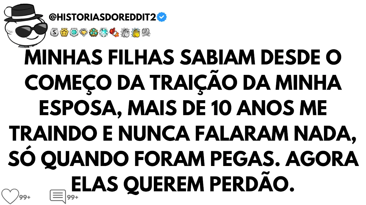 na semana passada um homem descobre a traição de sua esposa ao ver uma mensagem suspeita em seu celular desconfiado ele ass segue e confirma que ela está tendo um caso com o chefe além da dor da infidelidade ele se sente traído por suas filhas que mentiram para encobrir a mãe devastado ele busca ajuda de advogados e decide se afastar da família enquanto lida com a dor e a raiva sem saber como seguir em frente enquanto isso em outro relato um homem noivo há quatro anos começa a notar mudanças em sua noiva após ela iniciar um
