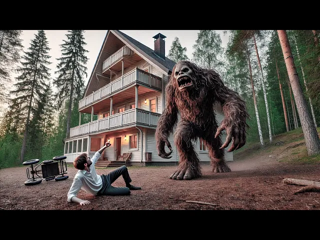 algumas árvores à frente como se tivesse visto algo mas logo em seguida seus latidos são silenciados deixando claro que algo está ali e atacou o cachorro também em seguida com o som de Passos pesados se aproximando Billy e sua esposa Etel correm de volta para sua casa Justo quando eles pensam que o que quer que esteja lá fora foi embora Eles veem sua sombra e percebem que a criatura está bem do lado fora da casa o casal pode ouvir a coisa grunindo pesadamente o que faz com que eles decidam esperar quando parece que o monstro