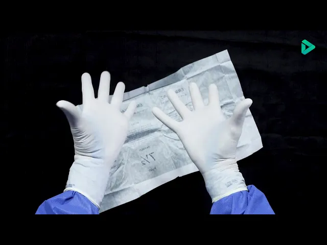 que ela fique na posição correta e que tenha conforto e segurança durante o procedimento cirúrgico e nós vamos ver agora em detalhes como calçar as luvas de modo apropriado é uma informação muito importante é a respeito do tamanho neste caso a minha luva é uma luva de tamanho 7,5 cada pessoa vai ter que saber qual luva que se adapta melhor às suas mãos o mais importante é que você tenha a luva calçada de modo firme as suas mãos ela não pode ficar sobrando demais porque Isso dificulta o tato na hora da cirurgia Então a partir