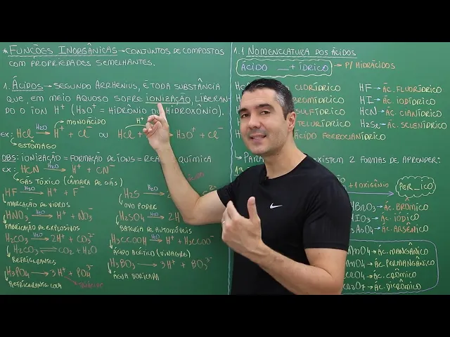 Olá meus queridos alunos tudo bem com vocês na aula de hoje nós teremos um assunto super importante hoje nós vamos estar dando início a um assunto que é base para tudo que você vai estudar daqui para frente que é a parte de funções inorgânicas eu diria para vocês que funções inorgânicas se não for o mais importante certamente é um dos assuntos mais importantes da química geral como eu falei para vocês tudo que For aprendido aqui será usado mais na frente os conceitos de ácidos bases sais óxidos e outras funções inorgânicas são muito importantes para que