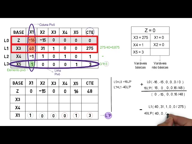 Método Simplex - Resolução de um problema de programação Linear (Pesquisa Operacional)