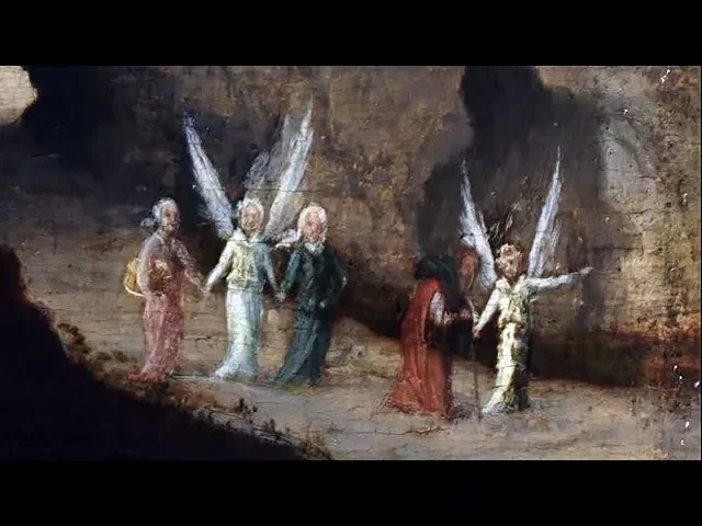 to the strangers he's awake enough so that when the strangers show up shows up he can pay attention to the way they're acting and can act spontaneously as a consequence of paying attention and things go well and so the strangers aren't hostile they don't kill Him they don't take his wife they don't do any of the terrible things that strangers could do and he gets a blessing as a consequence of it that seemed reasonable it is but we have to understand that these strangers are come from heaven in the sense that they've bringing a message