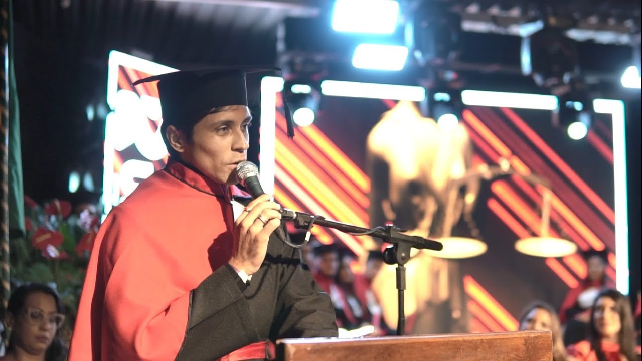e certa vez disse que os dias prósperos não vem por acaso nascem de muita dedicação e muita persistência Olá meus eminentes pares depois de longos 5 anos e graduação incontáveis xícaras de café milhares e páginas se livros vidas muito muito esforço e muita dedicação chegou o momento por nós tão esperado num momento da prosperidade mas momento em que deixamos de ser pequenos estudantes e passamos a ser juristas para que por meio de nossa formação podemos ajudar uma transformação do mundo e com isso sim alcançar a prosperidade E chegamos a universidade ainda jovens e ingênuos tá