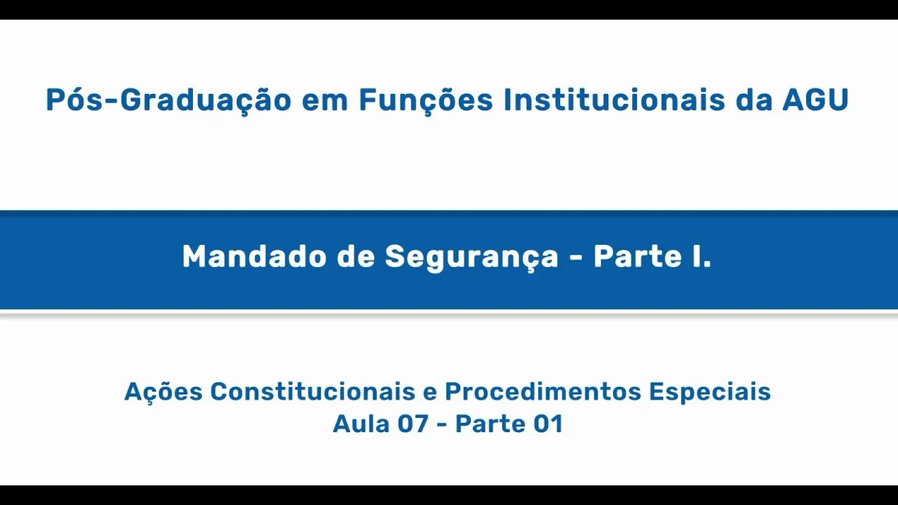 tema do mandado de segurança Desde já agradeço o convite da escola da advocacia-geral da união e vamos caminhar um pouco aí nesse tema importantíssimo aí para formação De pós-graduação de vocês tá bom Então pessoal eu queria dar uma Panorama rápido assim Panorama geral antes da gente examinar né a prova os temas do mandado de segurança tão trouxe aí para vocês um quadro esquemático né para organizar nosso raciocínio ao longo dessa uma hora de aula que a gente vai ter aqui tá então mandado segurança ele tem base normativa a condicional previsto artigo 569 da Constituição ele