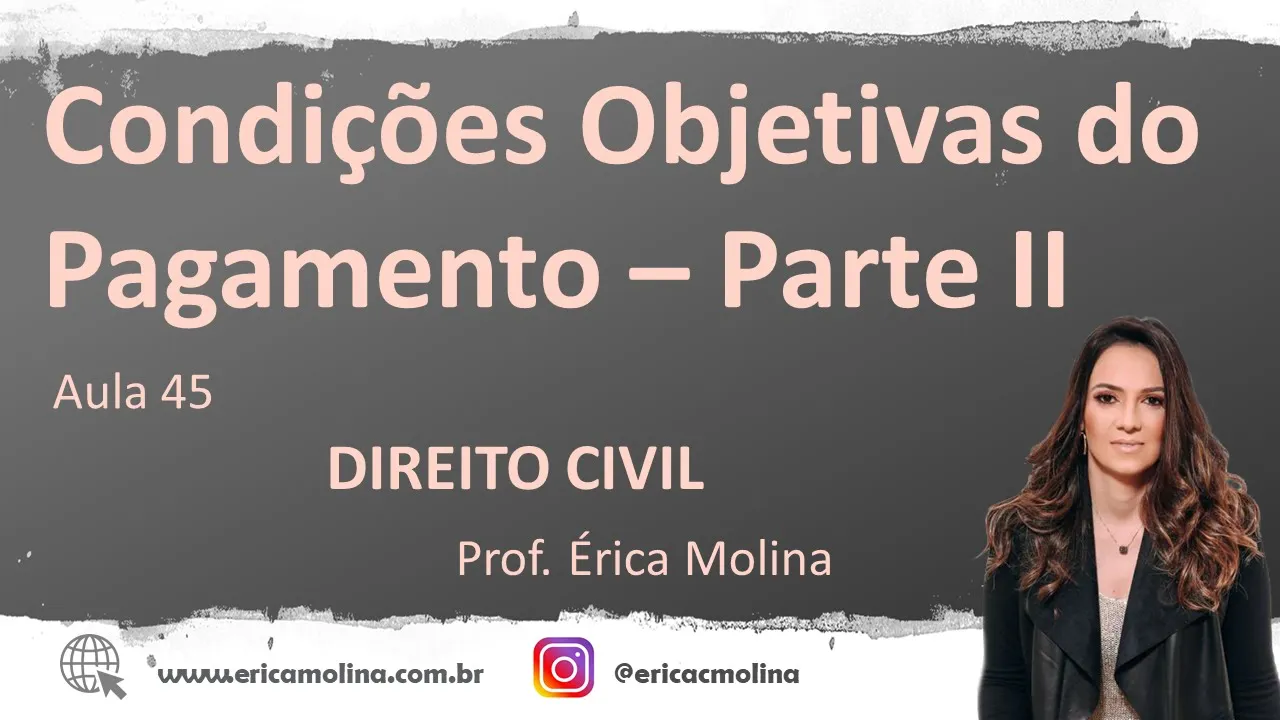 E aí [Música] o Olá pessoal tudo bem com vocês Espero muito que sim bem-vindos ao meu amado direito você viu bem vindos ao estudo do direito das obrigações Estamos estudando já a parte final das obrigações porque estamos falando do que mais importa que é o pagamento Afinal todo e qualquer obrigação nasce para ser extinto Estamos vendo que existem vários requisitos para que o pagamento seja válido porque o que importa é que o pagamento seja capaz de gerar a extinção da obrigação se ele for feito de forma diferente daquilo que foi convencionado então nós teremos um