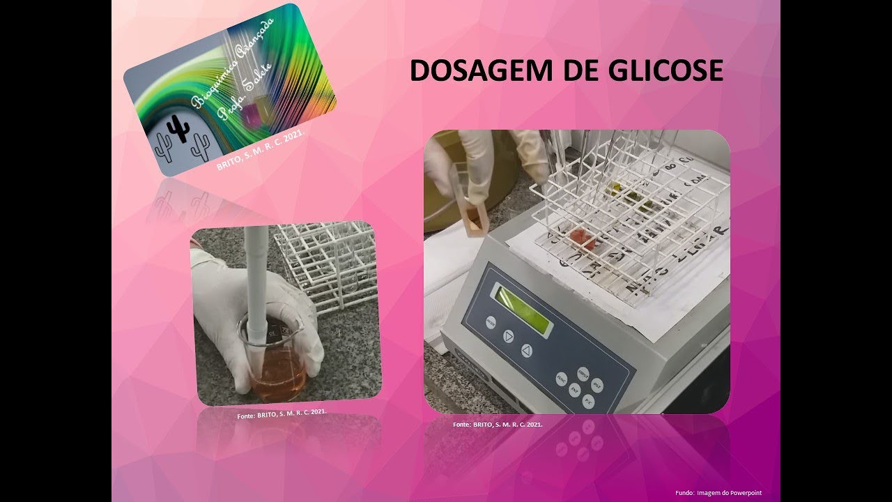 Olá no vídeo de Hoje iremos demonstrar como dosar a glicose utilizando o método da glicose oxidase nesse método a glicose ser oxidada a ácido glicólico com a formação do subproduto peróxido de hidrogênio que por sua vez será acoplado na reação de 30 formando a antipirilquinonimina uma molécula que absorve luz em 505 nanômetros e o que que de dosagem que iremos utilizar contém o frasco contendo os reagentes e o padrão de glicose esse frasco de Tropa Verde hoje a concentração de glicose 100 miligramas por decilitro e esse frasco Branco ele contém as enzimas glicose oxidase e