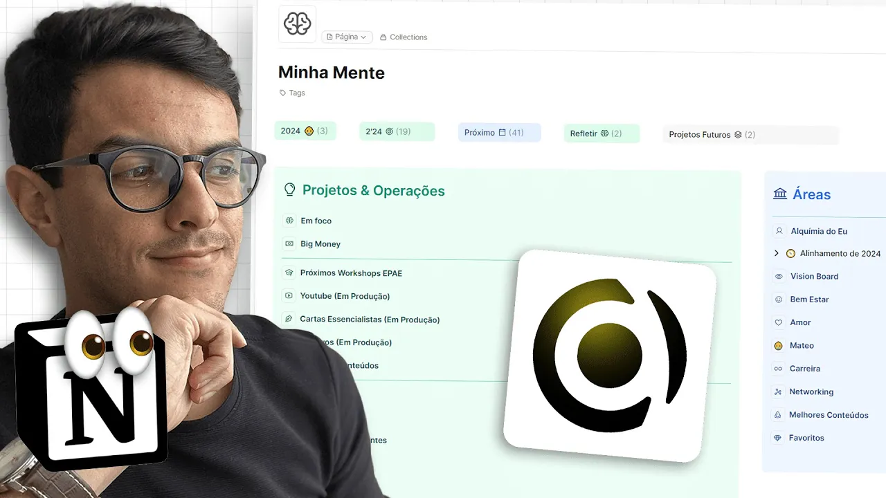 eu uso o sistema para em color coding Como assim né em verde eu sempre vou colocar os projetos e as operações Então são as coisas acionáveis o verde ele me lembra a questão da ação entrar em ação por isso que eu deixo em Verde em azul coloco as áreas da vida as minhas áreas de responsabilidade que são aquelas coisas que elas não têm o prazo final elas vão me acompanhando ao longo de toda a minha vida são as coisas que raramente você vai desativar Então se a gente pegar aqui das minhas áreas alquimia do eu