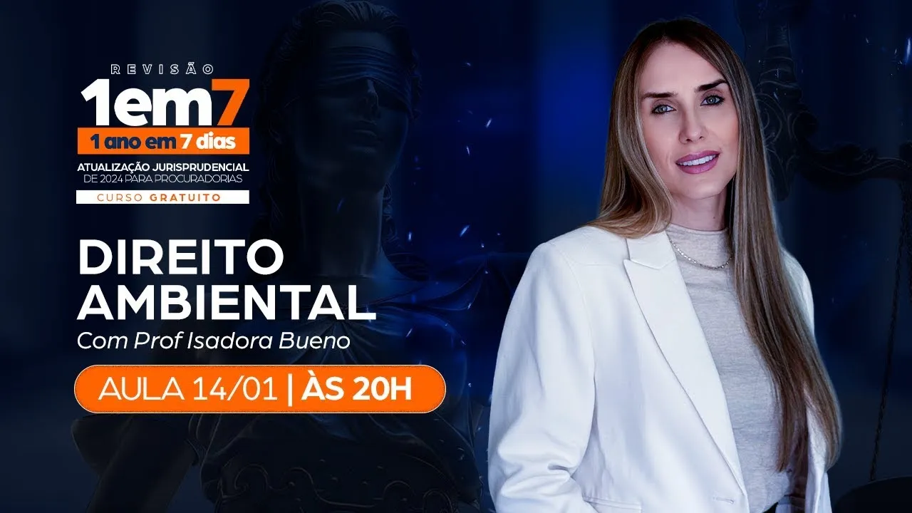Oi pessoal tudo certo e aí vamos de um ano em sete dias pro direito ambiental eu tô animadíssima bom eu sou Isadora Boeno procuradora do Estado de São Paulo e vocês já me conhecem aqui de longa data dentro do revisão tenho certeza disso porque a gente fala sobretudo um pouco e antes de começar a falar sobre os informativos E as novidades legislativas em si do direito ambiental eu quero falar esse tudo um pouco com vocês primeiro que o ano tá começando e é muito importante ter em mente o que eu vou fazer esse ano né