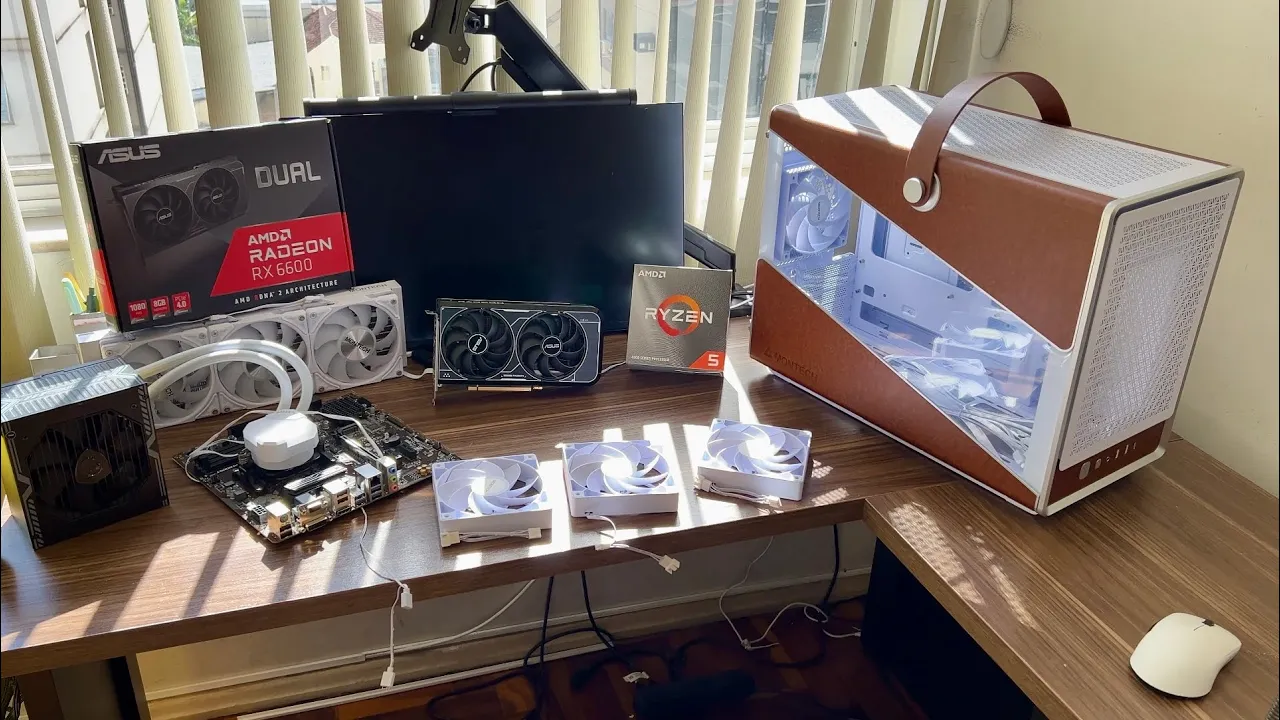 normais assim tipo assim que você você usa em um gabinete sem ser tão compacto sabe então ele vai ser compatível com a fonte TX vai dar para conseguir colocar uma tercol G 360 nele também e também cara ele tem um visual assim bem diferente assim cara vai ter tipo uma uma parada que imita couro que Pelas imagens que eu vi fica bem bonito e na montagem desse PC eu vou usar um rx6600 da Asus vou usar a fonte Magda MSI de 550 w Muito boa essa fonte bem barata também cara toda hora tá aparecendo aí