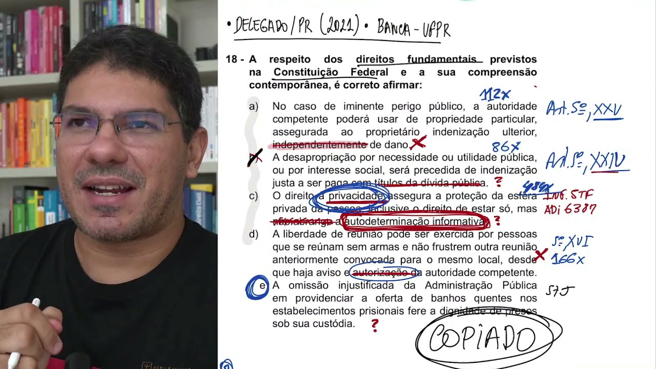 coisas eu não acerto as questões Então vamos vamos analisar eu queria saber porque que eu tava errado tanto e aí eu fui pesquisar questão por questão onde é que estavam as respostas da prova é porque eu olhava e não sabe a resposta e aí eu comecei a perceber que grande parte das questões que eu resolvia eu não entendia mas eu não sabia porque estava errando o detalhe que eu estava errando e eu descobri que estava na legislação aqui é um vademeco tá eu depois eu vou mostrar esse movimento daquela época que estava tribunais daquela época