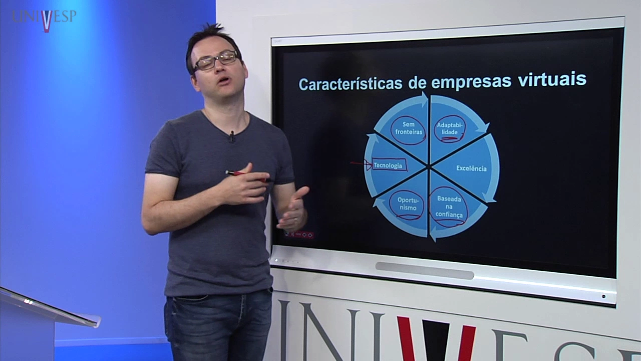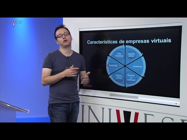 modelo inicial do ponto de vista de características dessas empresas virtuais nós temos por exemplo um aspecto bastante forte a tecnologia já havia mencionado anteriormente desde a hora em que eu digo empresas em geral dependem muito mais hoje tecnologia do que antes a gente está pensando empresa virtual então essa dependência ainda maior pois inclusive que eu destaquei como o primeiro e tem desses seis itens aqui não são só estes evitem alguns são mais ou menos importantes enfim são escolhidos aqui seis itens para serem tratados um outro é sem fronteiras enfim acabar sendo um resumo do vídeo
