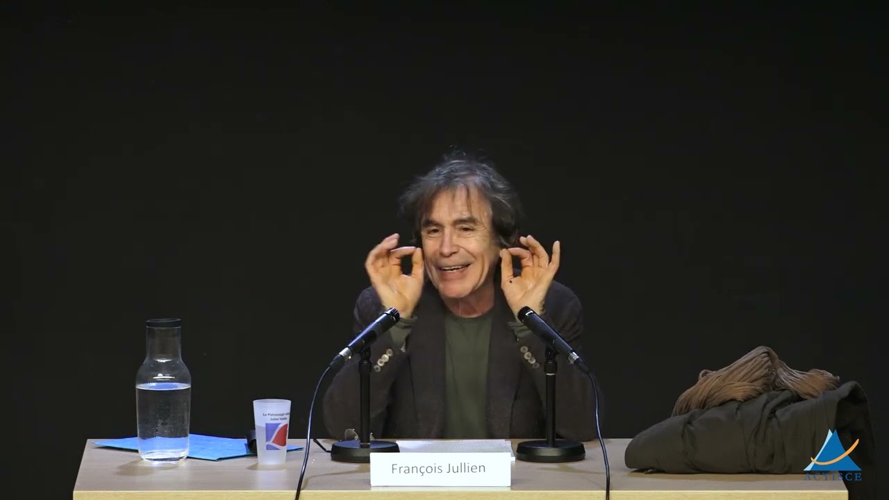 la connivance c'est François Julien qui a me rappeler l'étymologie de ce mot conivér en latin c'est cligner des yeux c'est a c'est une sorte d'entente cligner des yeux s'entendre en clignant des yeux si vous voulez donc il y a il faut un minimum de connivance avec un auteur alors que veut dire entrer dans une pensée alors ici il faut distinguer entrer et introduire lorsqu'on entre Quelqu part que l'on franchit un seuil on commence par être désorienté il en va de même lorsqu'on entre dans une pensée avec l'importance de la langue on entre dans une pensée