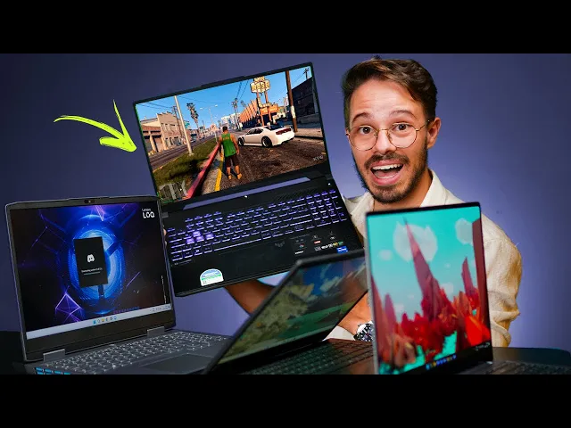 só os gamers na mesa Agora sim esse daqui é o vídeo finalmente atualizado 2025 eu demorei para atualizar esse vídeo por qu porque eu tava esperando alguns lançamentos que lançaram que tem aqui nessa lista outros que eu tava esperando e que ainda não lançaram então não tá nessa lista mas eu falei assim bom vou fazer logo a lista atualizada 2025 dos melhores notebooks gamers Ok só os gamers que serve Tanto para você jogar como para trabalhar mas aqui são todos os notebooks que tem placa de vídeo dedicada do mais barato na dos r000 e poucos reais até a faixa dos R 10. 000 Ok então nessa faixa de preço Qual que é o melhor em cada faixa de preço é isso que eu vou falar PR você não vou te deixar confuso não já vou te dar logo o melhor em cada faixa de preço então se você curte esse tipo de vídeo já deixa o like aqui que me ajuda demais é só isso só deixa o like aqui que me ajuda muito e comenta aqui embaixo também Qual que é o Notebook que você tem ou qual que você tá pensando em comprar se você já tem algum aqui dessa lista comenta aqui sua opinião assim você vai ajudar quem tá pensando em comprar bom como eu falei esses notebooks aqui que tá aqui na mesa olha só tem vários tem vários que não cabem aqui na mesa não daria para colocar todos são notebooks com placa de vídeo dedicado são notebooks que são servem Tanto para você jogar são realmente gamers como para trabalhar às vezes você tem aí algum trabalho que precisa realmente de um notebook mais forte edição de vídeo você é um engenheiro um arquiteto Ou você tem sei lá qualquer outro tipo de empresa ou qualquer outro tipo de trabalho que você precisa também de um notebook para trabalhar forte esse vídeo aqui é para você então vamos lá do mais barato ao mais caro e o link de tudo vai estar aqui na descrição bom eu quero começar falando para você o que você você não deve fazer o que você não deve comprar eu tenho aqui dois exemplos de notebook que são baratos o Lenovo Lock Olha só Lenovo Lock com rtx 2050 e o wn trov também com rtx 2050 pessoal esses notebooks com rtx 2050 são muito bons até certo valor não vá pagar r$ 4000 ou mais nesses notebooks Ok esses notebooks valem abaixo de r$ 4000 Ok então mais do que R 4000 não vale não compra notebook com etx 50 por mais de R 4. 000 Qual que é o valor ideal para você comprar qualquer notebook com rtx 2050 até R 3899 R 3.