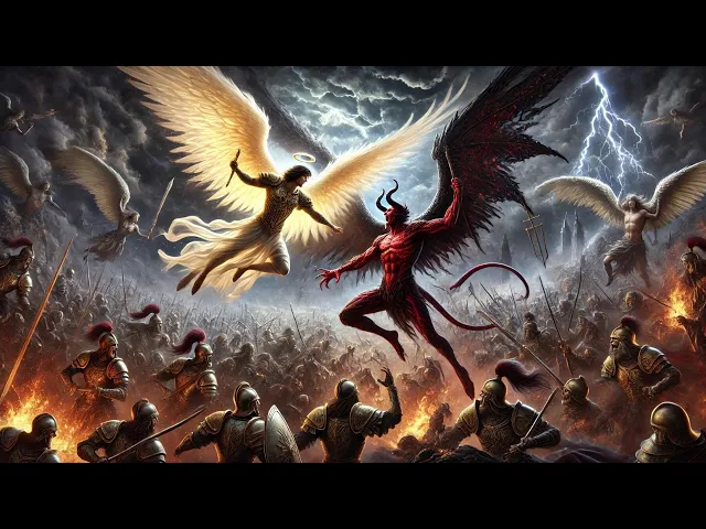 shattered the defenses of the rebellious Angels Uriel with his piercing gaze enlightening quick actions exploited the weaknesses of Lucifer's strategy together these four archangels formed an indomitable Force slowly but surely turning the tide against Lucifer's Rebellion their unwavering resolve and divine Authority proved to be a match for the chaotic strength of the fallen angels as the battle reached its climax Lucifer in a final desperate attempt to secure Victory transformed himself into a mighty dragon this terrifying form was a manifestation of all his pride rage and corrupted power yet even this was not enough to overcome