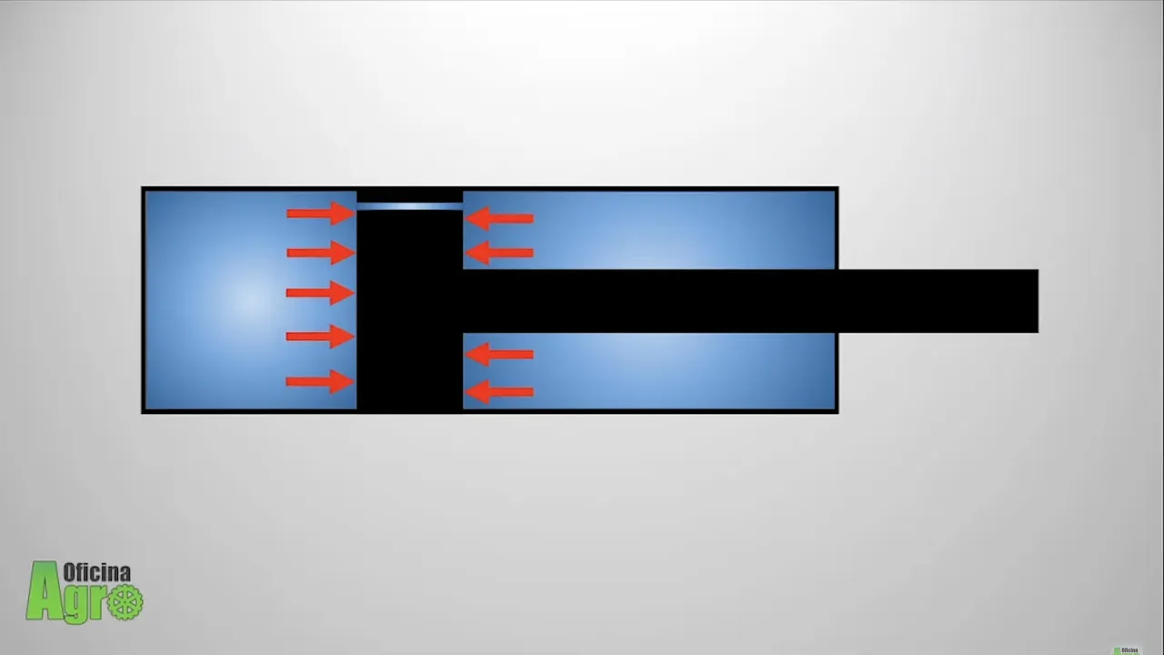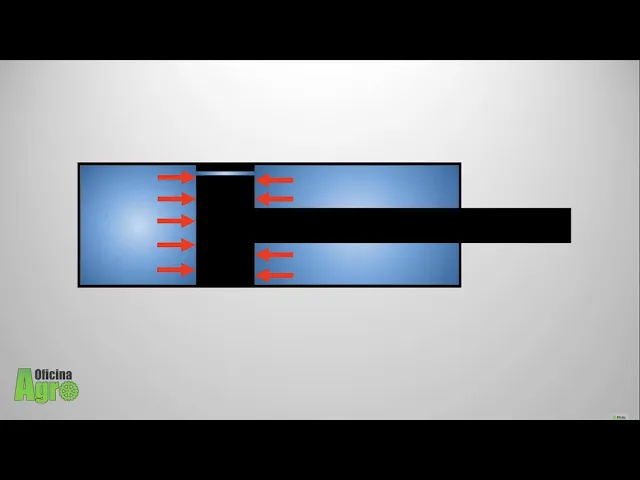 outro lado a outra câmara do cilindro veja aqui na animação Então olha só quando a gente Analisa os dois lados do embolo o resultado nós temos toda essa área em preto por exemplo que é um lado do embolo aí aonde o gás está exercendo a pressão para abrir o cilindro Em contrapartida do outro lado nós temos uma área menor porque porque nós temos a haste do cilindro aí em cinza que eu pintei mim sair ou seja na outra câmera aí o gasto a consegue fazer a pressão narin preto também então a gente consegue ver que