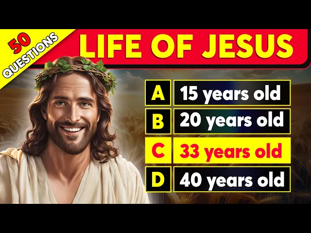 spread the message of Christ to a wider audience after the quiz share your results in the comments below we're excited to hear about your insights and experiences as we journey together through the life of Jesus let's get started question one how old was Jesus when he was baptized in the Jordan River a 30 years B 33 years c 25 years D 12 years you get 10 seconds [Music] that's a 30 years Jesus was baptized in the Jordan River at about the age of 30 as recorded in Luke 3:23 this event marked the beginning of Jesus's