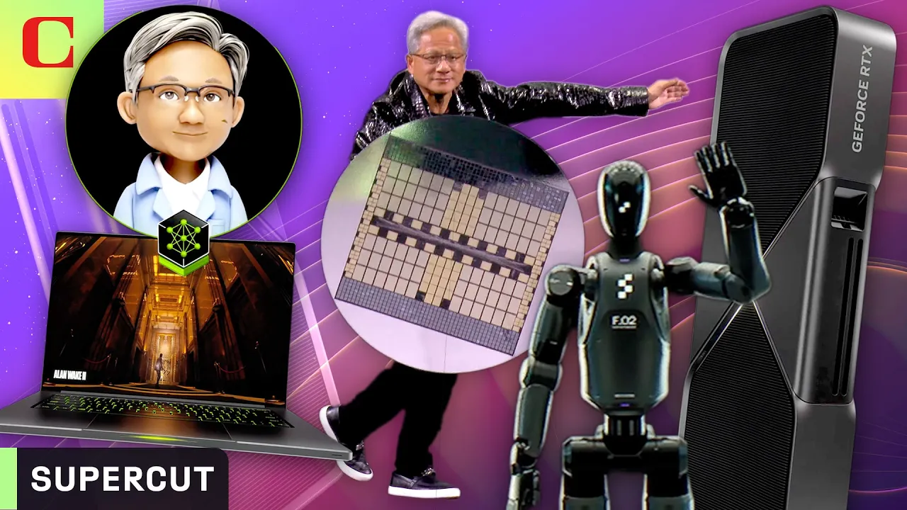 [Applause] here it [Applause] is our brand new GeForce RTX 50 Series Blackwell architecture the GPU is just a beast 92 billion transistors 4,000 tops four pedop flops of AI three times higher than the last generation Ada and we need all of it to generate those pixels that I showed you 300 80 Ray tracing teraflops so that we could for the pixels that we have to compute compute the most beautiful image you possibly can and of course 125 Shader teraflops there's actually a concurrent Shader teraflops as well as an Inger unit of equal performance so two dual shaders one is for floating point one is for integer G7 memory from Micron 1. 8 terabytes Per Second Twice The performance of our last generation and we now have the ability to intermix AI workloads with computer graphics workloads and one of the amazing things about this generation is the programmable Shader is also able to now process neuro networks so the Shader is able to carry these neuron networks and as a result we invented neurot texture compression and neural material shading with the Blackwell family RTX 570 490 performance at 549 impossible without artificial intelligence impossible without the Four Tops four ter Ops of AI tensor cores impossible without the G7 memories okay so 5070 4090 performance 5 $49 and here's the whole family starting from 570 all the way up to 590 590 twice the performance of a490 starting of course we're producing a very large scale availability starting January well it is incredible but we managed to put these in in gigantic performance gpus into a laptop this is a 57 laptop for $12. 99 this 5070 laptop has a 4090 performance and so the 90 the 5090 will fit into a laptop a thin laptop that last laptop was 14 14.