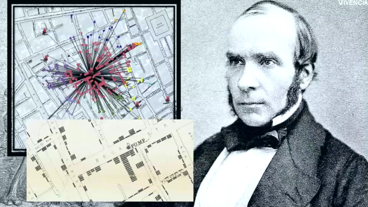 de satélites drones dados interconectados em sistemas virtuais e digitar não conhecem esse sujeito esse é o doutor john snow não aquele da série oc totalizou foi disruptivo na sua visão de medicina porque lá num dos surtos de cólera em londres em 1853 mais do que coletar dados sobre as mortes de cólera mais do que indicar que pra ele as doenças não eram necessariamente transmitidas pelo ar que era a teoria vigente médica naquele momento ele foi a campo ele foi vivenciar transformar território lugar entender e levantar onde estão as pessoas que morreram e como naquele momento