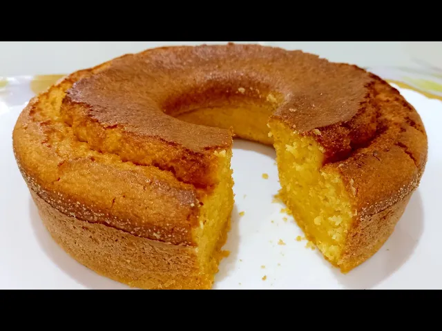 por último vou acrescentar aqui uma colher de sopa de fermento em pó e vou bater bati por 3 minutinhos Vou colocar aqui na forma untei e polvilhei com fubá vou levar na I Fry PR a 180 g e já volto com ele Prontinho Olha só gente ficou Prontinho apenas 30 minutos vou pegar aqui um pedacinho para vocês verem como ele fica olha isso gente fica bem cremoso vou pegar aqui para vocês verem Olha isso gente Que cremosidade que fica olha só hum gente fica delicioso saboroso tudo de bom pode fazer que vocês vão amar se