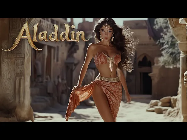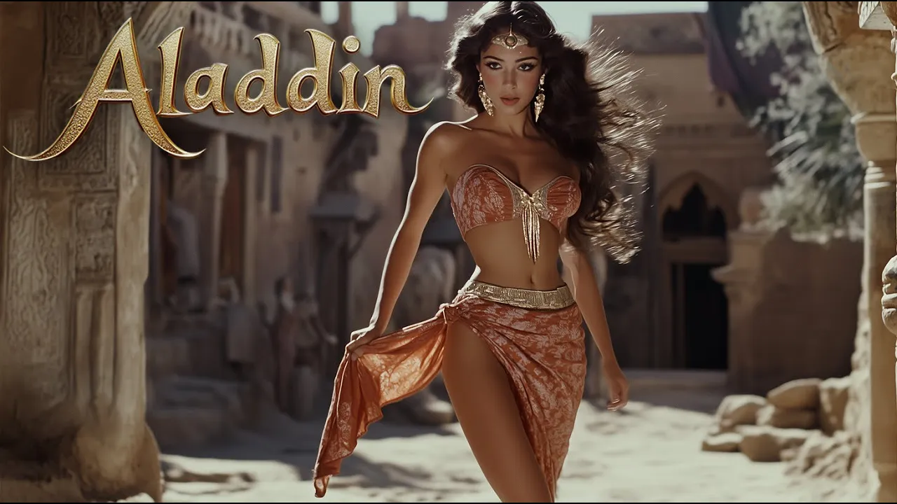 in a far away land of Mystic deserts and bustling bazaars a young street urchin named Aladdin dreams of a life beyond the dusty streets of agraba with nothing but his quick wit and charm he survives unaware that his fate is about to change forever when Aladdin stumbles upon a magical lamp hidden deep within the Cave of Wonders he unleashes the all powerful Genie who offers him three wishes with a heart full of Hope Aladdin wishes to become a prince to win the love of the beautiful princess Jasmine but the road to happiness is paved with