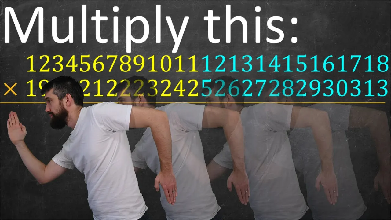 add those four numbers up and you get 1792 Final Answer depending on exactly how you were taught and where in the world you might organize your information a little bit differently but this is the basic algorithm that most of us are familiar with and what I really want to note is that in this algorithm you have to do four different sub multiplications four different multiplications of single digits like two times six is twelve after you get those four results then you have to add them up so there's four multiplications and three additions to do this algorithm and in general if you're multiplying two n digit numbers together it takes N squared total multiplications to get your answer a different take on this is if I look at a number like 32 I can think of this as three times ten plus two in general if a number has digits like a b then what I really mean by this is a times ten plus b and live similarly c times ten plus d so if I multiply these two things out then what what I times 10 a d plus BC times 10 and timely BD just times one that is there are four different multiplications as we've seen before this is the same algorithm you know and love I've just perhaps organized it differently on the screen but now I'm going to do a trick let me look at that middle term that tens term the a d plus BC times 10 term I'm going to replace these two multiplications by one multiplication it's just a little bit of algebra there's almost nothing to it if I expand out a plus b times C plus d i get terms like a c and b d and so I just subtract them off and these two things are equal but now I notice that a B plus C D well there's one multiplication there and then there's two more a c and b d but AC and BD are multiplications I have to do anyways I have to do AC I have to do BD and so now I have a total of only three single digit multiplications that I need to do in this algorithm this is called the carrot Suba algorithm now while I have a gain that I have less multiplications to do I do have more additions to do but as we're going to see a little bit later and depending on your computer's architecture multiplications are going to be the thing that slow us down so having to do less multiplications even at the cost of more additions is going to be a net benefit to us okay so let's run that carrot Suba algorithm out for our 32 times 56. I still have to do the ones and I still have to do the 100s the 12 and the 15 are exactly the same but in the middle that's going to change by the algorithm I'm going to expand this out and then if I plug in the numbers the result that I get is just going to be 28 but indeed 12 plus 280 plus 1500 is the same thing as 1792 the same result we got before now I actually think that this is slower for us humans doing small numbers like this hardly this is because single digit multiplication is something we've all memorized we've all memorized this times table so you can say 7 times 8 and you immediately know the answer so getting less single digit multiplications which for humans we've memorized in the cost of having to do more additions is actually slower for us humans for these small numbers the kerasuba algorithm isn't going to replace your mental math quickly but where it's going to shine is when I consider larger numbers let's just go a little bit larger up let's do an eight digit times an eight digit because I can do carrot silver over and over and over again first I'll try color coded in the same way where I break a number up as an A and A B and A C and A D really what I'm saying is this is one two three four times ten thousand plus five six seven eight if I imagine thinking of the ABCD sort of blocks that keep together I'm going to get four different sub multiplications that I'd have to compute out but carrot subba says that instead of four sub multiplications I only need three indeed these two sort of diagonal ones can be condensed into just a single multiplication and then same let me take any one of these multiplications I have to do that's now four by four well I do the same thing I can write this as a times a hundred plus b so 1200 plus 34 and 9100 plus one I try to think about what would be the four different sub multiplications I need to do and two of them buy the caratsuba algorithm I can remove down to one multiplication and then two by two we've already seen how I can take two by two and just a three one by one multiplications and so I can take this divide and conquer approach and just do it over and over and over again let's imagine I'm taking two numbers of size 2 to the power of K and multiplying them it's not exactly two to the K you can just imagine having a few more zeros at the front until it's the closest power of two but with two to the K's this is going to be mostly efficient because now I can imagine having and having and having just as we did before eight four two one I can do that when it's powers of two and for every stage where I take a number up and I break it in half then I can say that there's three multiplications that stage so in general there's going to be three to the K multiplications needed to multiply out to two to the K numbers I can do just a little bit of a fun log stuff like three to the K that's the number of multiplications if n is 2 to the k then k is logarithm base 2 of n so I can just write this as 3 to the logarithm base 2 of N I can use some log rules to Interchange the 3 and the n and if I compute out what log base 2 of 3 is it's 9 to about 1. 58 and this is an improvement because the algorithm that you and I all know that we are taught in school took N squared multiplications and now we only need about n to the 1.