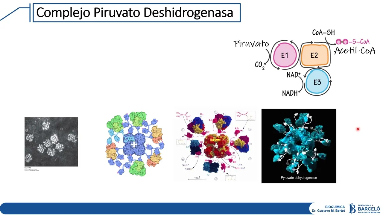 muy central en el metabolismo intermedio es la el encargado de generar Quizás El acetilco a través de una de las vías principales que es vía metabolismo de la glucosa un complejo muy enzimático mitocondrial con una complejidad estructural interesante la conjunción de cinco actividades enzimáticas tres para poder producir el proceso catalítica y dos que participan de su control un control que es muy fino porque tiene que establecer de forma adecuada el equilibrio entre la oferta la oferta de piruvato y la demanda de acetilco a de tal manera que en forma concertada nos permite entender esa regulación