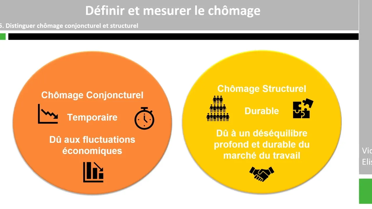au sens du Bureau international du travail qui remplissent l'une des conditions suivantes elles travaillent à temps partiel souhaitent travailler davantage et sont disponibles pour le faire qu'elles recherchent activement un emploi ou non ou bien elle travaille à temps partiel ou à temps complet mais ont travaillit moins que d'habitude pendant une semaine de référence en raison par exemple de chômage partiel ou de mauvais temps en analyse économique on peut distinguer le chômage conjoncturel du chômage structurel le chômage conjoncturel est lié à la conjoncture économique c'est un type de chômage qui résulte d'un ralentissement temporaire de l'activité