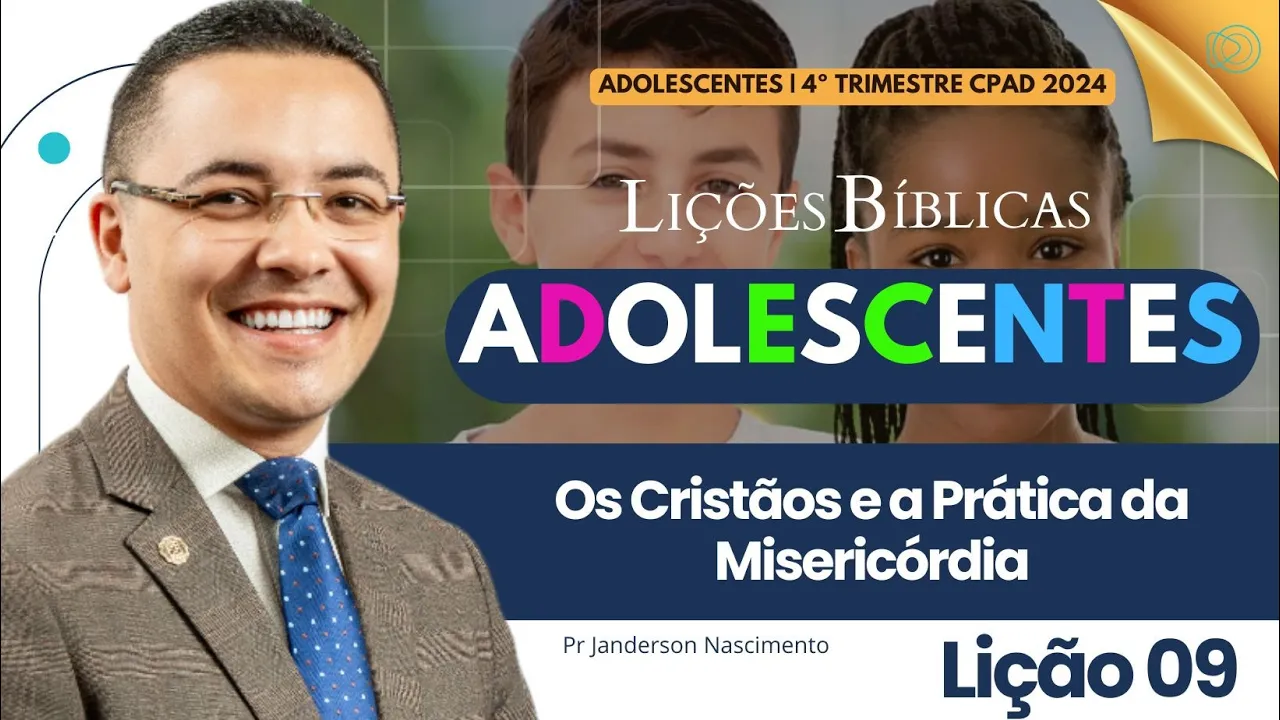 chegamos então na lição de número nove aqui da classe dos Adolescentes deste quarto trimestre da CPAD em 2024 nessa lição nós estamos trabalhando um texto do pastor Jader Cruz tema da aula de hoje os cristãos e a prática da misericórdia é importante você iniciar a tua aula por algumas bases bíblicas que a própria lição já oferece a primeira delas é a leitura bíblica que está em Isaías e Capítulo 58 Versículos 5 ao 12 depois você pode estar lendo a mensagem que se localiza em Isaías Capítulo 1 Versículo 17 lendo esse texto compassadamente deixando Deus te