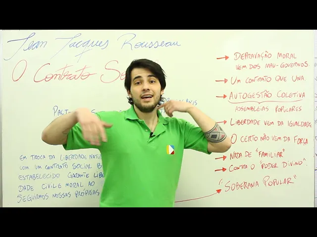 e o homem nasceu livre porém por toda parte encontra-se sobre os grilhões acorrentado quem acredita se senhor dos outros não deixa de ser mais escravo do que eles como ocorreu essa mudança não sei o que poderia tornar legítima creio poder responder essa pergunta nossa vídeo aula de hoje é sobre jean-jacques cursou o cidadão de genebra e o contrato social formulado por ele que vai tentar responder essa pergunta como é que pode tornar legítima essa essas relações sociais de poder de dominação será que tem como vamos descobrir a nossa vídeo aula de hoje então mais uma