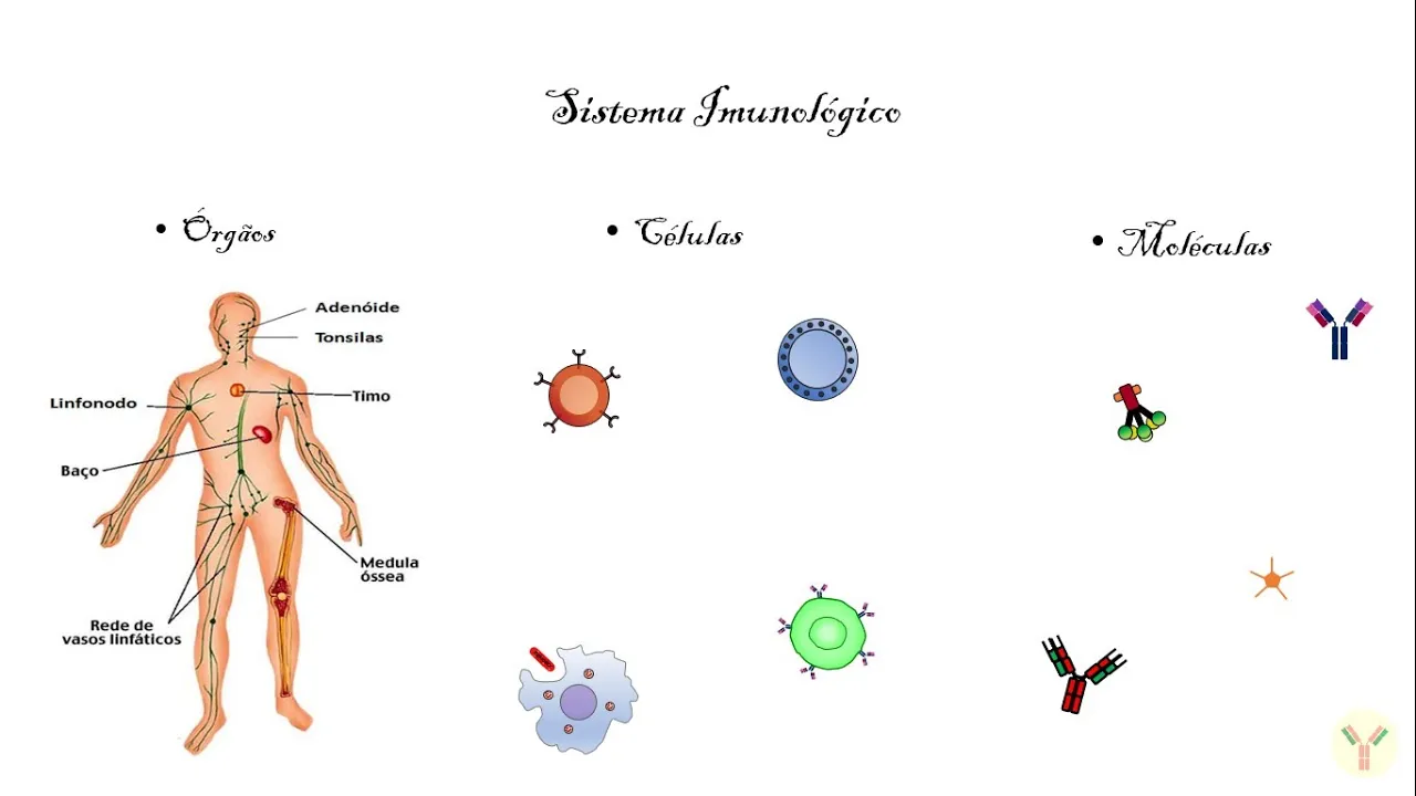 composto o sistema então sistema então ele é composto por alguns órgãos e a gente vai ver quais são esses órgãos hoje pelas células teremos também todas as células que acabam participando do da resposta imunológica e que compõem o sistema imunológico como tudo e falaremos também de algumas moléculas mas no finalzinho da aula eu falo um pouco dessas moléculas envolvidas na resposta imunológica mas antes de começar a propriamente dito faltando dos órgãos e jogar mais alguns conceitos aqui para vocês para ficarem todo esse muito bem claro né então um conceito de imunidade né e unidades que