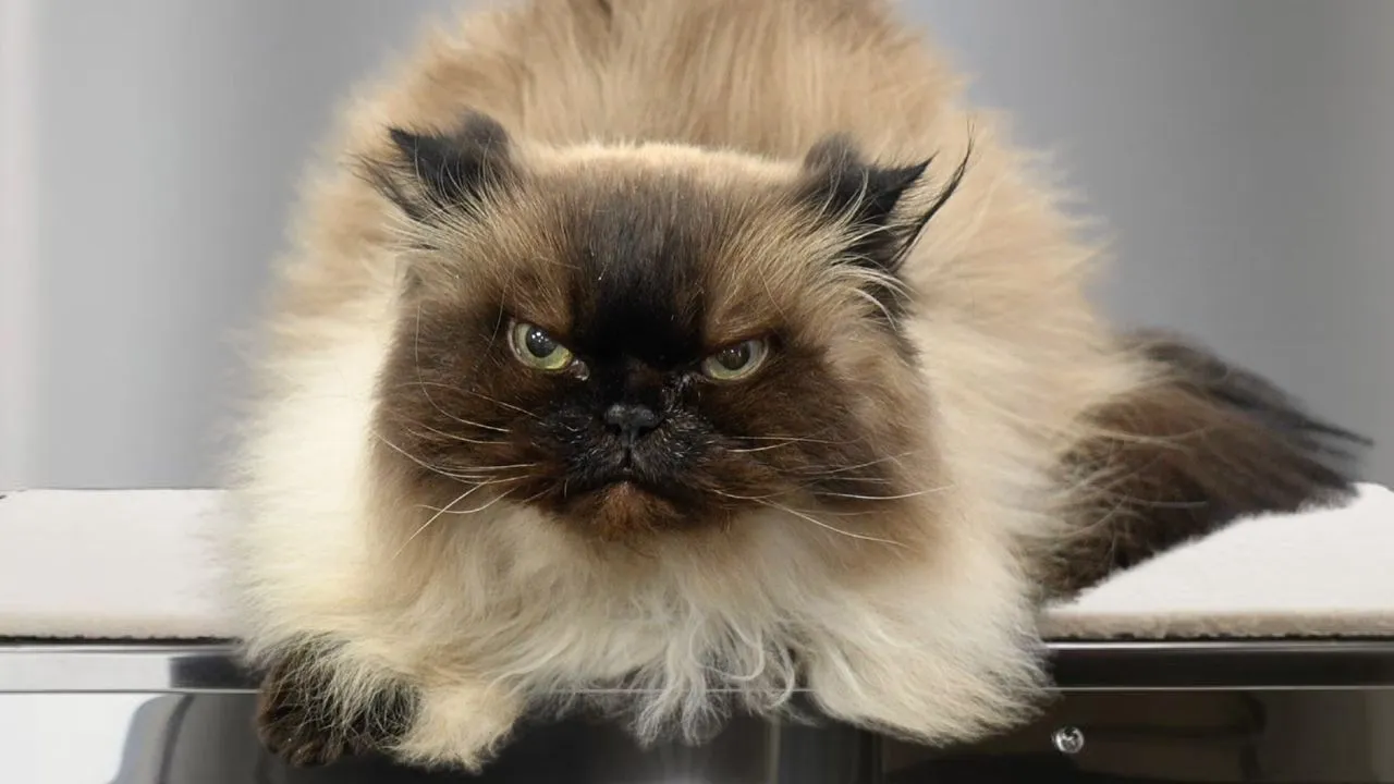 do you like tubes no you don't like tubes you can't be bribed so this is Penny and she is a Himalayan I have been told that her sister is more feisty her sister is here right now but she will be in the next video I am to check Penny out see if she has any matting and shave out that matting and then she has to go for a bath and a brush so hopefully you're a good girl right I just want to feel you up oh you're such a small little cat you're so tiny are