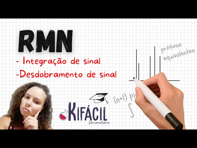 o Olá seja bem-vindo e bem-vindo ao que fácil no vídeo de hoje nós daremos continuidade aos nossos estudos sobre ressonância magnética nuclear se você gostar do vídeo não se esqueça de deixar seu lar e seguir a gente nas redes sociais isso ajuda muito na divulgação e crescimento do canal e se você ainda não é inscrito aproveita para se inscrever e ativar o Sininho para não perder nenhuma notificação do vídeo anterior Nós aprendemos os conceitos de blindagem de prótons e deslocamento químico e agora entenderemos o conceito de integração e desdobramento de sinal e para isso vamos observar a molécula de acetato de benzila nós já Vimos que o espectro de rmn Pode distinguir os diferentes tipos de próton em uma molécula ou seja quais prótons estão em um mesmo ambiente químico assim o número de sinais mostre quantos tipos diferentes de hidrogênio estão presentes na molécula no caso do acetato de benzila podemos observar cinco grupos equivalentes a b c Ah não então no primeiro né para facilitar a análise Vamos considerar os próprios CD e é como equivalentes a posição de cada sinal nos diz como núcleo do hidrogênio está bem dado ou respingado E isso se deve a fatores que já vimos no vídeo anterior como efeito de ressonância ou proximidade com grupos retiradores de densidade eletrônica mas Além disso um espectro de rmn também pode nos mostrar quantos prótons de cada tipo estão contidos na molécula a área sobre cada pico é proporcional ao número de hidrogênios que geram esse pico quando realizamos uma análise por rmn podemos pedir ao programa de análise de dados que integra e cada sinal assim ele nos forneceram valor para cada sinal obtido no caso do acetato de benzila os valores são seguintes 57. 19 23. 1 e 35.