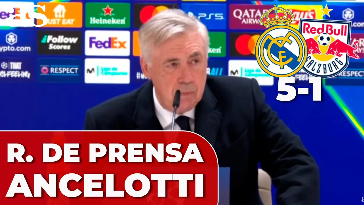 menos a defender si en los días grandes ese trabajo de ellos dos ayudando pues parte menos el equipo bueno ha tenido tenido un poco de molestia la espalda nada de de preocupante de serio a nivel defensivo cada uno tiene su papel el papel de mbappé no es el papel de rudiger cada uno por lo suyo tiene que cumplir su papel creo que estamos mejorando mucho hemos mejorado mucho eh pero tenemos que seguir mejorando haos las últimas dos preguntas Hola Carlo Hola Carlo Buenas noches Lorenzo del país nos ha dicho antes que usted se focaliza en