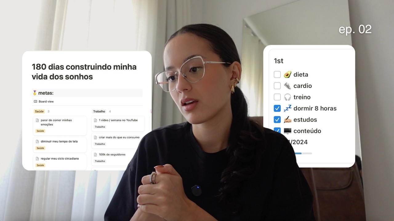 isso se eu vou fazer no papel ou se eu vou criar um template no Notion ou se eu vou imprimir um calendário e fazer algo assim mais sabe que eu consiga ver todo dia não sei ainda mas vocês vão acompanhar nos próximos capítulos você deve ter percebido que a minha vida dos sonhos ela não tem nada muito de mirabolante eu vou estar completamente satisfeita e muito feliz se eu chegar nos meus 25 anos e eu ser uma mulher mais confiante mais espontânea ter diminuído o meu tempo de tela e ter conquistado um espaço meio de