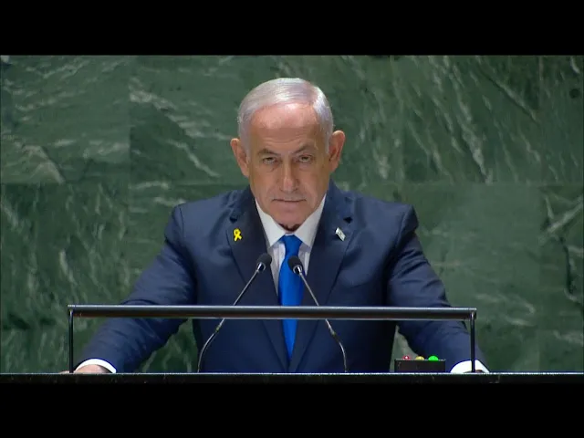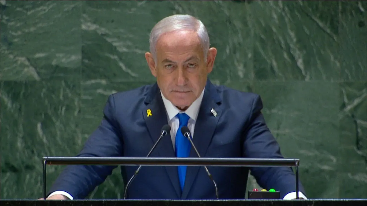 Em salão esvaziado em protesto, Netanyahu faz discurso bélico e com ameaças | AFP