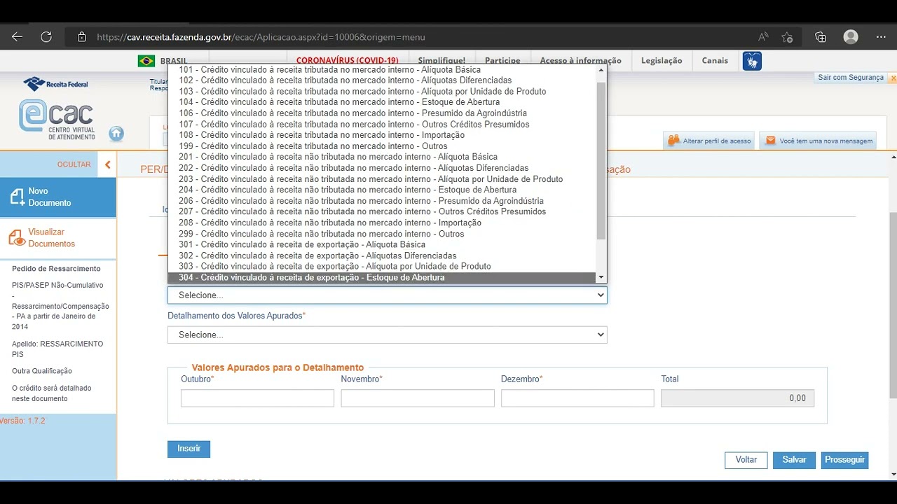 cancelamento ok tipo de crédito aí então nós teremos IPI né crédito de ressarcimento de IPI e crédito de ressarcimento de IPI o saldo né Depois nós vamos ver na prática exatamente qual é o termo Utilizado ali créditos de pagamento indevido a maior créditos de saldo negativo de rpj só negativo da contribuição social créditos do reintegra juros sobre capital próprio Quando chegarmos na prática Vamos abrir aquele Campo ali para que possamos para que possamos identificar esses carros tá vendo aí o pessoal que tá tentando entrar Em Então vamos lá ainda dentro da ficha novo documento agora