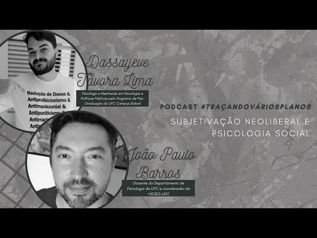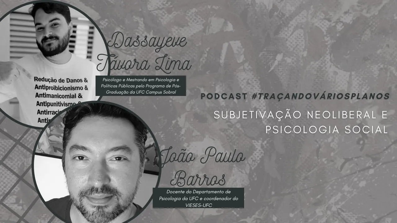 o olá pessoal sejam muito bem-vindas bem-vindos bem-vindos a mais uma edição do nosso podcast chamado passando vários planos que discutir fenômenos psicossociais contemporâneos a partir de perspectivas em psicologia social eu me chamo joão paulo barros sou professor do departamento de psicologia e do programa de pós-graduação em psicologia da universidade federal do ceará também coordeno vier grupo de pesquisas e intervenções sobre violência e exclusão social e subjetivação o tema do nosso podcast de hoje é a subjetivação da liberal e as questões que essa temática provoca ao campo da psicologia social na atualidade mas vamos realizar um