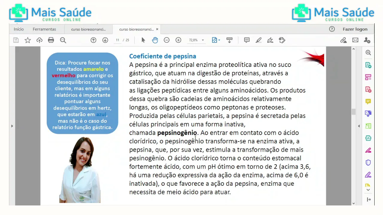 tá é em alguns parâmetros não é o caso da pepsina e dela que deu normal mesmo mas ele deve ficar atento aos sintomas por isso que é anamnese Clínica deve ser feita primeiro para a gente saber as queixas principais do paciente porque às vezes a gente vai ter que focar naquele naquele relatório ele mesmo em azul mesmo em pouco a normal porque é uma queixa que ainda não foi solucionada para aquela pessoa para aquele indivíduo que foi avaliado como um analisador quântico Tá bom então deve ficar de olho também na anamnese Clínica e nas queixas
