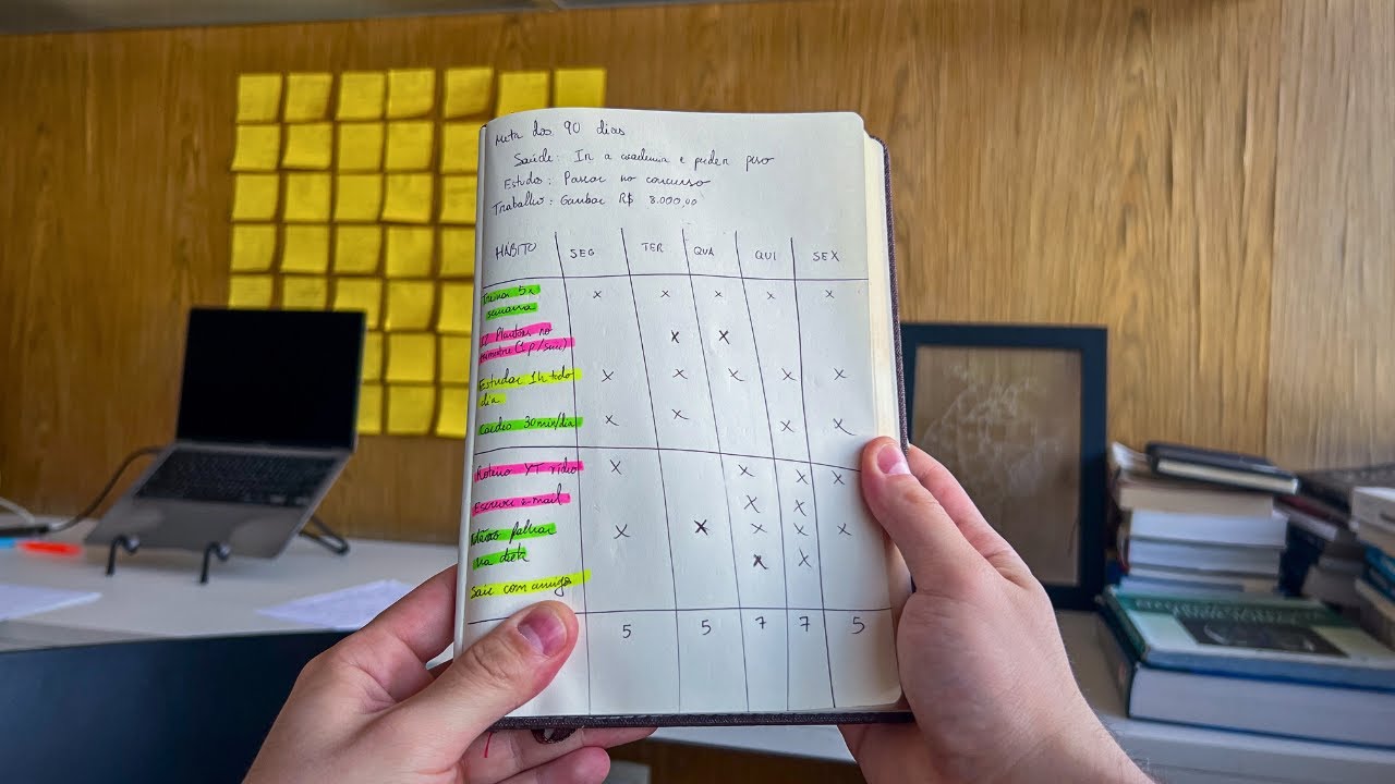 todos os anos muitas pessoas definem metas mas poucas realmente conseguem construir aquilo ao longo do ano os sistemas eles são ações que podem fazer com que a gente se aproxime daquilo e esse aqui é um sistema que eu vim utilizando nos últimos três a 4 anos de anotar tudo que eu tenho para fazer no dia a partir dessas metas que eu defini anteriormente Agora eu tenho mudado isso para um Horizonte de apenas 90 dias e tem feito toda a diferença na minha vida foi realmente o que me permitiu que eu me formasse conseguisse ganhar dinheiro