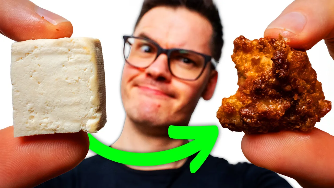 here's how I actually tried Tofu for the first time a decade ago now after a while I could make tofu tolerable but to be honest I still thought that tofu sucks in this video I'm going to show you the four main types of tofu and how to prepare them for cooking then we're going to launch right into six Unforgettable tofu recipes all of them are fantastic especially number two which blew my mind so get ready your tofu game is about to get 10 times better so when picking out your tofu the main decision that you're going to make in the grocer store is what level of firmness you want your tofu to have silken tofu is very soft and perfect for smoothies soups or even as a base for sauces and dips it's smooth and creamy texture really Blends well adding richness and protein to your dishes next we have firm tofu this type of tofu is still quite soft so it's great for dishes where you still want to have a little bit of gentle texture like in an eggless tofu salad baking it also helps get you a crispy texture on the outside while soft and creamy on the inside extra firm and super firm tofu are your best options if you want a really meaty texture that comes out super crispy after cooking between the two of these super firm tofu has the most protein density and also the strongest texture as the name and Plies for silk and tofu you often just need to throw it into your dish such as a smoothie or some sauces but for the other kinds of tofu that are more firm there are many different ways that you can prep it so the first way that you can prep firm tofu is by taking an entire entire unopened package and throwing in the freezer no wait I'm Bing [Music] you then you can bring it out and you can thaw it after freezing and then drain it to get a really nice chewy texture now the simplest way to prep your tofu is just taking it right out of the fridge cutting it open draining the excess water and then it's ready to cook honestly that's what I do 99% of the time because it's super easy and super fast however lots of people like to press their tofu and generally speaking the less from your tofu the more water it's going to have in it which means the more you're going to need to press the excess water out to get a meteor texture now honestly I've been vegan for about 10 years and I have never purchased a tofu press until this video so it's really not something that you need to have but if you do like to press your tofu and do that on a regular basis then this could be a good investment for you that was a little high as I said I pretty much never press my tofu and one reason is because I often use super firm tofu so super firm tofu you don't need to press because it already has a really low water content okay now we've been talking so much about tofu are I'm pretty curious let's do it it tastes like kind of bad coconut it's like kind of bad coconut water it's not great definitely wouldn't want to drink all that but tofu is great o 10 out of 10 for that transition to show a scoring method of preparing tofu we're going to be making barbecue tofu steaks preheat the oven to 400° and prepare a baking sheet with parchment paper or a silicone baking mat grab as many blocks of super firm tofu as you like when cooking tofu I recommend making extra for the week just know that each marinade recipe in this video will yield one serving which is enough to marinate one block of tofu so be sure to multiply the measurements by how many blocks you want to make as you go through each recipe I'll be cooking two blocks of tofu myself and making two servings of marinade still all measurements on screen will be for a single serving to get started with making our barbecue tofu steak cut the Block in half lengthwise you can also cut the block into thirds for a more slim and Well Done stake on each half start making diagonal cuts that go through the block halfway we do not want to slice through the entire block one trick is to use wooden spoons or Chopsticks to keep the knife from cutting all the way through then repeat the step in the opposite direction making diagonal cuts that are perpendicular to the ones we just made in a flat bottom Bowl add 1/4 cup of your favorite barbecue sauce 1 tbsp of apple cider vinegar and half a teaspoon each of paprika and garlic powder add each tofu steak to the Bowl crisscross side down Fanning it out just slightly we want to be sure to get as much sauce to the center of the tofu as possible so the whole thing has great flavor flip and gently press down again use a spoon to add more of the sauce into the crevices there should be a little sauce left over you can open up the tofu even more by pressing in a teaspoon or two of minced garlic this will create extra room for our barbecue marinade and allow our steak to cook more thoroughly transfer your tofu steaks to the pan and pop in the oven for about 45 minutes until the edges are nice and crispy once they are done you can drizzle with the remaining sauce for extra flavor all right time for some barbecue tofu steak taste test let's see how we [Music] did well cooked I can taste a lot of the garlic which is good cuz I love garlic yeah it's actually a nice uh nice addition and some tofu steak now I could actually Crush that right now I'd give this a four out of five barbecue isn't really my good go too but it has a really nice flavor it has a really extra firm for lack of a better word tough texture in a good way it just tastes really meaty I think the garlic helped a lot I love garlic so that was a good addition I think that really helped it to cook thoroughly very good four out of five so next up I'm going to show you a recipe with tofu torn into chunks by making some peanut butter tofu chicken pizza pieces to make some super crispy tofu that tastes like it was fried we want to use a thick high-fat sauce we're going to be using peanut butter for that so we can avoid using oil while we make our Thai inspired peanut marinade feel free to press out any exces