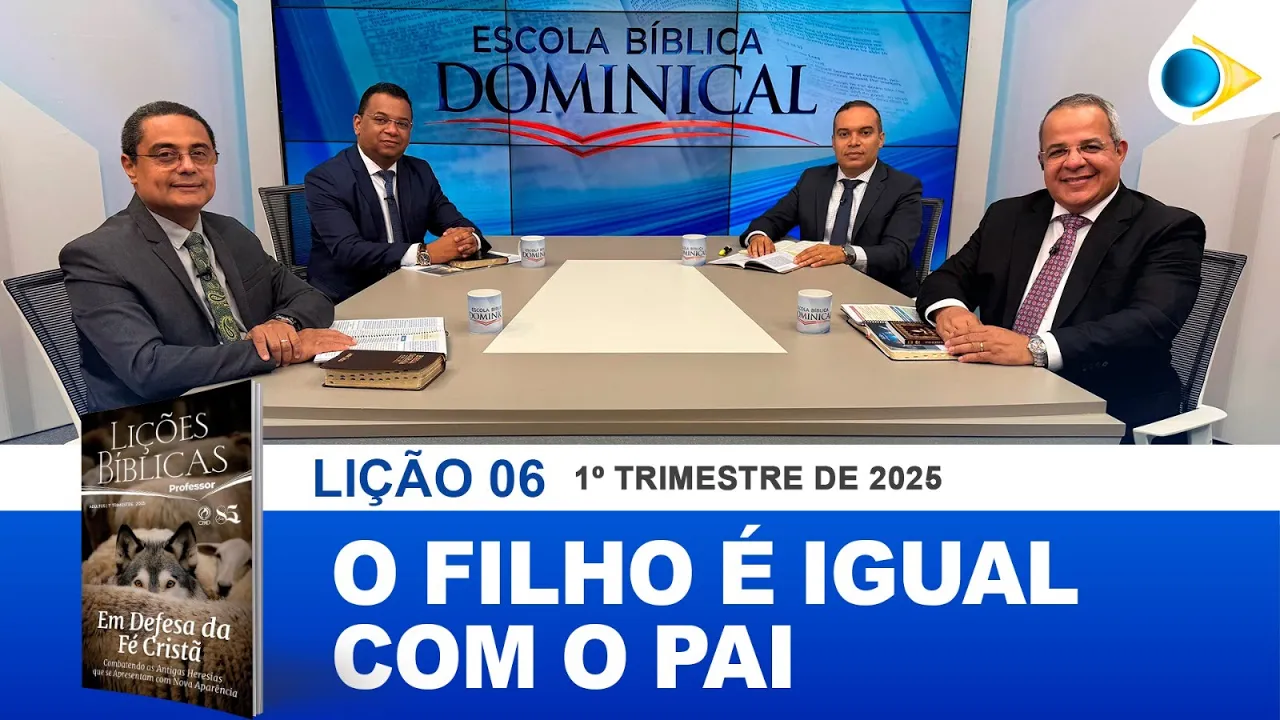 [Música] queridos irmãos a paz do Senhor Jesus estamos começando o programa Escola Bíblica Dominical Obrigado por sua audiência este programa está sendo transmitida em Recife e região metropolitana através do canal 14 e em todo o estado de Pernambuco pouco pelas repetidoras da Rede Brasil também pelo Spotify e nosso canal no YouTube Rede Brasil oficial sejam bem-vindos que Deus Abençoe você e toda a sua família através desta programação hoje estudaremos a sexta lição com o título O filho é igual com o pai e para comentar esta lição contamos com a presença do pastor Valber Gustavo P