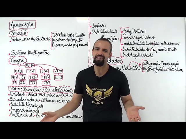 vamos para cima pessoal vamos dar continuidade ao nosso curso de Direito Processual Civil agora eu quero aprofundar um pouquinho mais contigo sobre o assunto jurisdição Você já sabe o que é jurisdição e também sabe diferenciar jurisdição de ação Então qual é o conceito de jurisdição que você tem que levar para prova jurisdição é um poder dever do Estado de dizer de aplicar o direito resolvendo os conflitos de interesse que eles são apresentados e ao resolver os conflitos ele preserva paz social mas esse conceito tá tranquilo contigo você sabe que jurisdição é o poder dever do