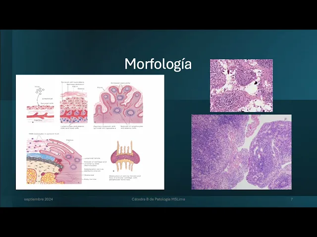 que eso en la artritis reumatoidea lo que nosotros observábamos era que se hiperplasi Aba la sinovial llegando a tener entre ocho o 10 capas eh de sinoviocitos a estos se agrega un proceso inflamatorio con celas Gigantes multinucleadas empiezan a formarse vellosidades como vemos en la imagen eh además asociada a la inflamación y sobre todo los linfocitos empiezan a ordenarse o acumularse hacerse acúmulos que empiezan a tener sus centros germinales como un tejido linfoide asociado en este caso a la sinovial este panus o este tejido va creciendo por encima de la articulación y las estructuras adyacentes
